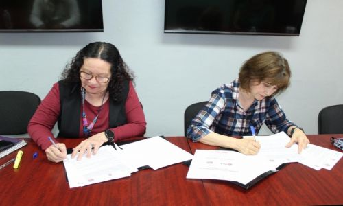 La directora general del ISEA, María Engracia Carrazco Valenzuela y la secretaria general del Steus, Rosa Elvira Silva Manzo, firmaron el convenio de colaboración para acercar los servicios educativos del instituto a los trabajadores universitarios que lo deseen.