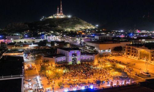 Al término del programa, toda la gente reunida en la Plaza se tomó una foto con dron, teniendo como fondo la catrina de pan de muertos elaborada por estudiantes de Gastronomía de la Universidad Vizcaya de las Américas, Campus Hermosillo, bajo la coordinación del chef César Adrián Yedra.