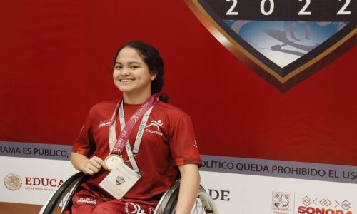 Hermosillo, Sonora, 14 de noviembre del 2022.- Rosita Rascón es una jovencita que asume retos en su vida deportiva, y ya logró sortear otro más: convertirse en medallista nacional paralímpica, lo cual hizo en plan grande, tras ganar cuatro preseas, siendo tres de oro y una de plata.