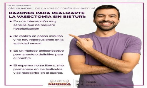 Hermosillo, Sonora; 18 de noviembre de 2022.- En conmemoración del Día Mundial de la Vasectomía, la Secretaría de Salud recordó a las y los sonorenses que esta opción es un método anticonceptivo permanente, el cual se realiza en las unidades de la dependencia.