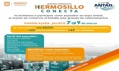 La invitación sigue abierta para participar como parte del programa Hermosillo Conecta de la AMDE en la Expo ANTAD, donde se reunirán alrededor de 47 mil personas de 65 países interesadas en realizar transacciones comerciales.