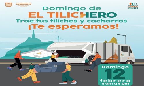 Hermosillo, Sonora; 10 de febrero, 2023.- Servicios Públicos Municipales llevará a cabo el Día del Tilichero este domingo 12 de febrero en la unidad deportiva de la colonia Nacameri, donde la ciudadanía podrá llevar cacharros, artículos y muebles que ya no use.