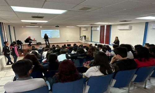 Hermosillo, Sonora; 22 de marzo de 2023.- Con temas de prevención de adicciones, protocolos de actuación ante casos de detección de drogas y atención a faltas administrativas, entre otros, el Gobierno de Sonora brinda atención integral a la comunidad escolar del Centro de Bachillerato Tecnológico Industrial y de Servicios (CBTIS) No. 132.