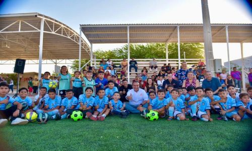 Luego de un recorrido por las instalaciones y convivencia con la comunidad, hizo entrega de material deportivo a niñas y niños que diariamente utilizan esta cancha para practicar futbol, como los equipos Pachuca y Villanueva.