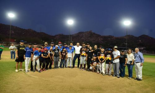 Acompañado por Carla Neudert Córdova, directora de la Agencia Municipal de Energía y Cambio Climático (AMECC); Armando Labrada García, director del Instituto del Deporte de Hermosillo (IDH) e integrantes de la Liga Hermosillo Sur Infantil y Juvenil, encendió el sistema de iluminación de campos de béisbol, sóftbol y fútbol 7.
