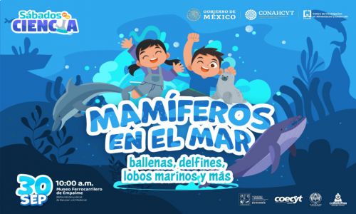 El programa de divulgación científica dirigido a la población infantil “Sábados en la Ciencia” llevará a Empalme, Sonora, su primera sesión a través del taller “Mamíferos en el mar ballenas, delfines, lobos marinos y más”, que se celebrará el próximo 30 de septiembre en el Museo Ferrocarrilero.