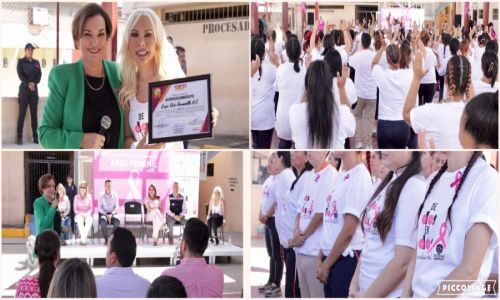 Hermosillo, Sonora; 21 de octubre de 2023.- Por ser el cuidado de la salud un derecho, la Secretaría de Seguridad Pública (SSP) de Sonora conmemoró el “Día Mundial de la Lucha Contra el Cáncer de Mama” en el Centro de Reinserción Social Hermosillo Uno área femenil, donde se reconoció la labor preventiva que realiza el grupo RETO A. C. desde hace 10 años ininterrumpidos en beneficio de las mujeres privadas de su libertad.