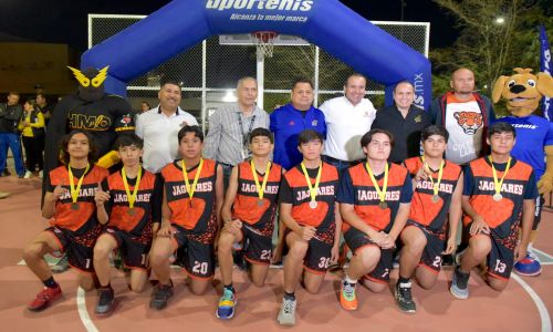 El Presidente Municipal y autoridades deportivas entregaron medallas en la Cancha 16 de Septiembre uno de los tres espacios públicos rehabilitados donde se desarrolló la onceava edición de este torneo que registró a mil 400 participantes en 130 equipos de basquetbol.