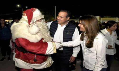Hermosillo, Sonora; 10 de diciembre, 2023.- Con inflables, pintura en caballetes, pinta caritas y fotos con Santo Clós, niñas y niños de la colonia Villas del Sur celebraron la posada navideña Creces junto Antonio Astiazarán y su esposa Patricia Ruibal Zaragoza.