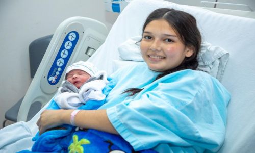 Iam Dariel es un bebé sano de 3 kilogramos, y se convirtió en el primer hijo de Azul Esmeralda, originaria de Ímuris, Sonora, quien mostró un gran entusiasmo y alegría, de tener a su pequeño entre sus brazos por primera vez.