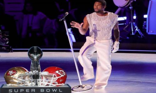 El músico y cantante estadounidense Usher acaba de presentar su espectáculo del medio tiempo del Super Bowl LVIII desde el Allegiant Stadium, muy al estilo de los shows de Las Vegas con mucho glamour, plumas y lentejuelas.