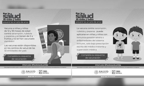 Por ello, están disponibles más de 79 mil 92 dosis contra sarampión, rubéola y parotiditis a niñas y niños de 1 a 9 años; más de 86 mil dosis contra la poliomielitis para menores de 2 meses a 4 años de edad; y 53 mil 17 dosis del biológico SR (sarampión, rubéola) para menores de 1 a 9 años y de 10 a 39 años.