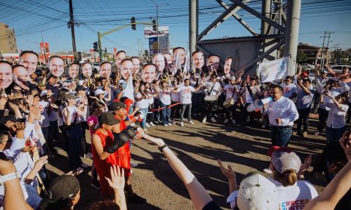 La H sonó fuerte en el crucero Luis Donaldo Colosio y bulevar Solidaridad con la energía de los jóvenes que junto a Toño Astiazarán activaron la campaña permanente en las calles para promover un nuevo estilo de gobernar sin colores ni partidos.