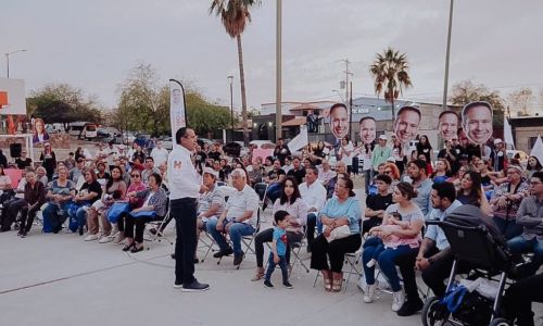 Las instalaciones del campo de fútbol de la colonia Altares se llenaron de entusiasmo entre cientos de personas que recibieron al candidato a la Presidencia Municipal y se comprometieron en continuar por la ruta de un Hermosillo que avanza en empleos, seguridad, obra pública como la rehabilitación del bulevar Musaro.