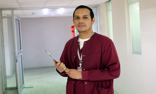 Hermosillo, Sonora; 11 de mayo de 2024.- Leonardo Uriel Hernández Barreras es un enfermero que labora en Isssteson desde hace casi 12 años. Aunque en sus planes no se encontraba estudiar enfermería, ingresó a dicha carrera como segunda opción en el plano de la salud y al cursar su primer año se dió cuenta que realmente era lo que quería hacer.