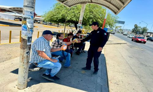 En operativo conjunto elementos de la Coordinación Municipal de Protección Civil, oficiales de la Jefatura de Policía Preventiva y Tránsito Municipal y jóvenes del Instituto Hermosillense de la Juventud atendieron a personas en distintas colonias, puntos de reunión y paradas de camión con botellas de agua y suero con el objetivo de hidratar a la comunidad, mismo que continuarán en los próximos días ante la alerta por ola de calor.