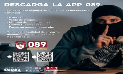 Hermosillo, Sonora; 12 de julio de 2024.- Con el objetivo de facilitar la denuncia anónima de diversos delitos, la Secretaría de Seguridad Pública (SSP) diseñó la aplicación móvil 089 Sonora.