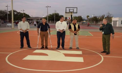 Entrega Tono Astiazaran rehabilitacion de canchas de basquetbol en Bahia de Kino