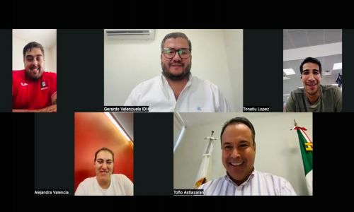 Toño Astiazarán sostuvo una charla vía zoom con Alejandra Valencia, Tonatiuh López y Edgar Ulises Fuentes para reconocer el empeño, esfuerzo y dedicación que los llevó a representar a México en los Juegos Olímpicos 2024 e invitarlos para que a su regreso de la justa deportiva se reúnan para presentarles las obras que beneficiarán a los deportistas de diversas disciplinas.
