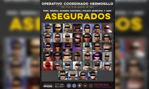 Hermosillo, Sonora, 20 de agosto de 2024.- En un esfuerzo conjunto para reforzar la seguridad en la capital sonorense, las corporaciones policiales de los tres niveles de gobierno lograron la detención de 53 personas durante acciones coordinadas para disminuir el delito en Hermosillo.
