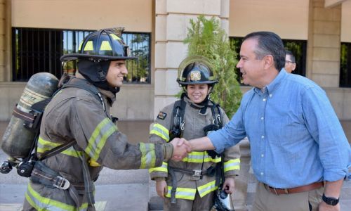 De manera especial reconoció a las mujeres y hombres que acudieron de la Policía Preventiva y Tránsito Municipal, Bomberos de Hermosillo, Cruz Roja Mexicana y el personal de Protección Civil Municipal y estatal.