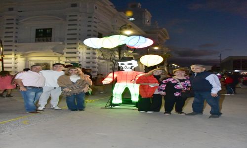 Familias completas, algunas con sus mascotas, llegaron desde temprano a corresponder con su admiración a quienes se esforzaron por ambientar los alrededores de la plaza Zaragoza con catrinas, calaveras, altares de muertos y toda clase de arreglos florales que se aprovecharon para innumerables fotos de recuerdo.