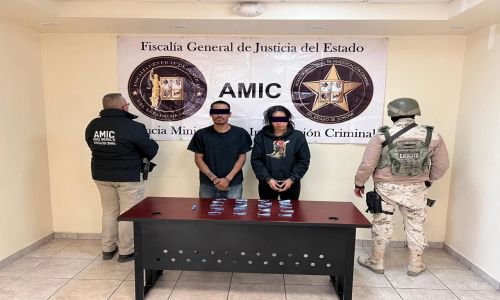 En el domicilio ubicado en la avenida Oaxaca B en San Luis Río Colorado, Sonora, fueron detenidos Adrián “N”, de 43 años y Magda Margarita “N”, de 33 años, quienes se encontraban en posesión de 21 envoltorios con una sustancia similar a la droga conocida como cristal.
