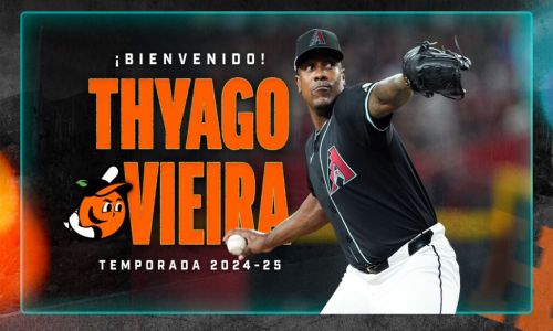 NSN: Los campeones Naranjeros de Hermosillo fortalecen su pitcheo de relevo con la incorporación del ligamayorista brasileño Thyago Vieira quien se sumará para la recta final de la temporada 2024-2025 al staff de lanzadores de la Escuadra Naranja.