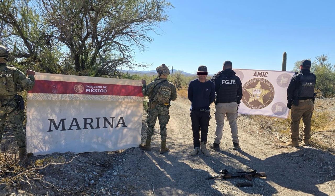 Operativo AMIC y SEMAR captura a sujeto con fusiles, cartuchos y equipo táctico en Trincheras