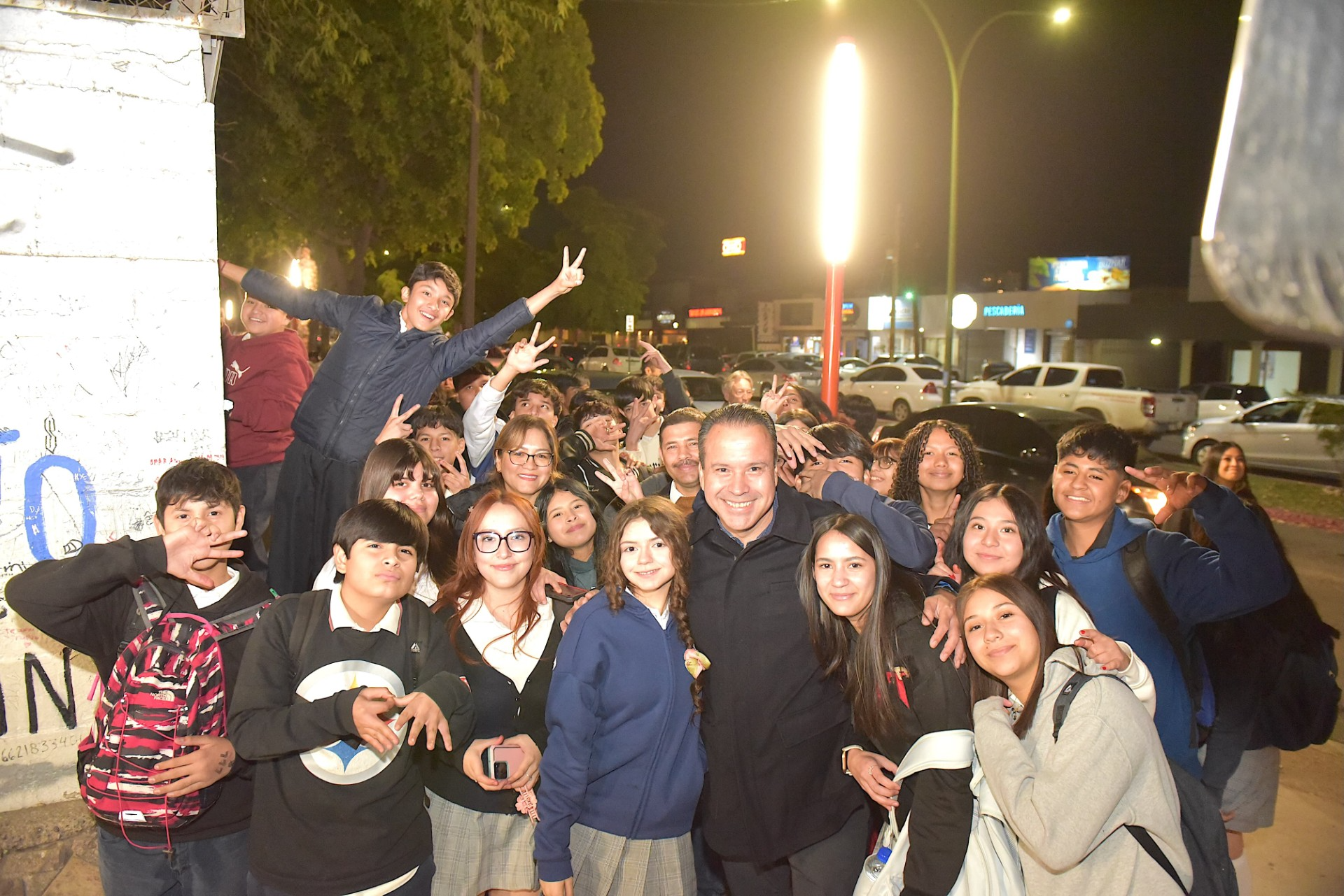 El presidente municipal y la comunidad educativa del turno vespertino inauguraron el tramo de 250 metros de iluminación que les permitirá transitar con seguridad al salir de la emblemática escuela “Prof. Carlos Espinoza Muñoz” conocida como “La Prevo”.