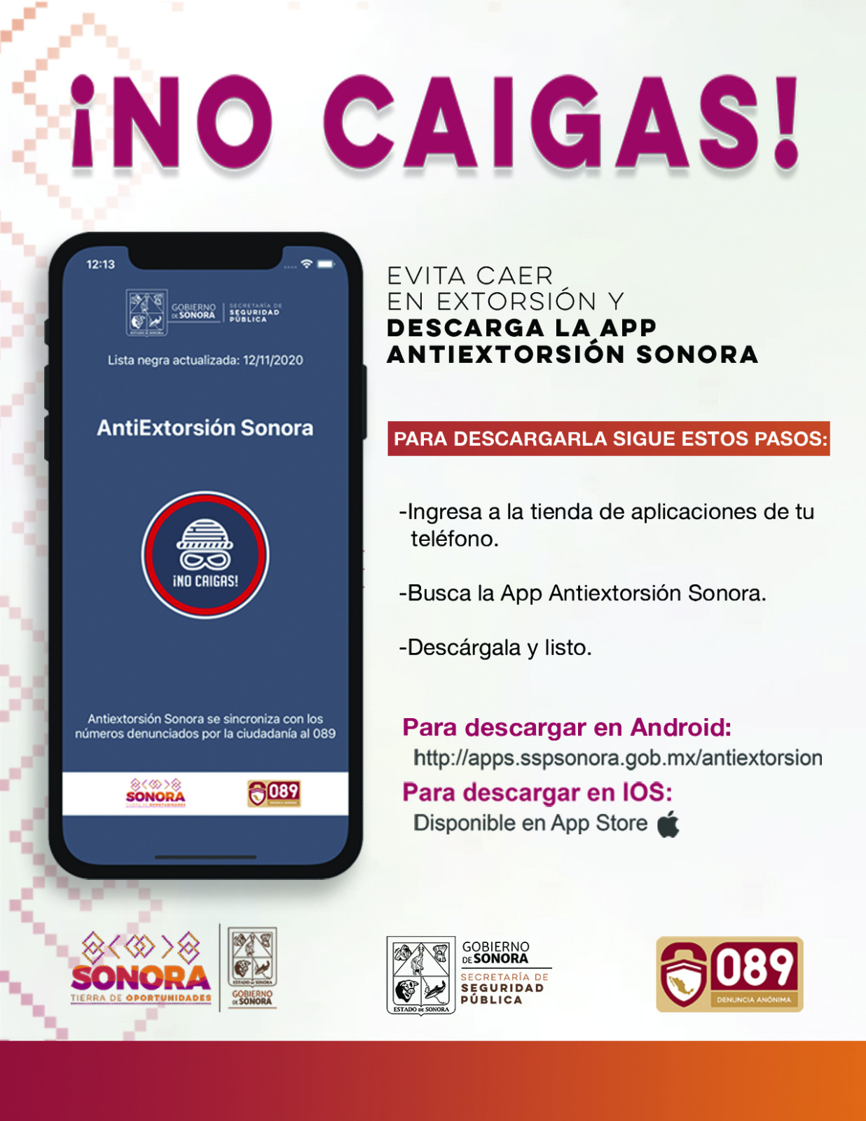 La SSP informó que, la herramienta diseñada por personal del C5I Sonora, ha permitido evitar que ciudadanos sean víctimas de una extorsión telefónica, por lo que se exhorta a las y los sonorenses a descargarla desde la tienda de aplicaciones de preferencia.