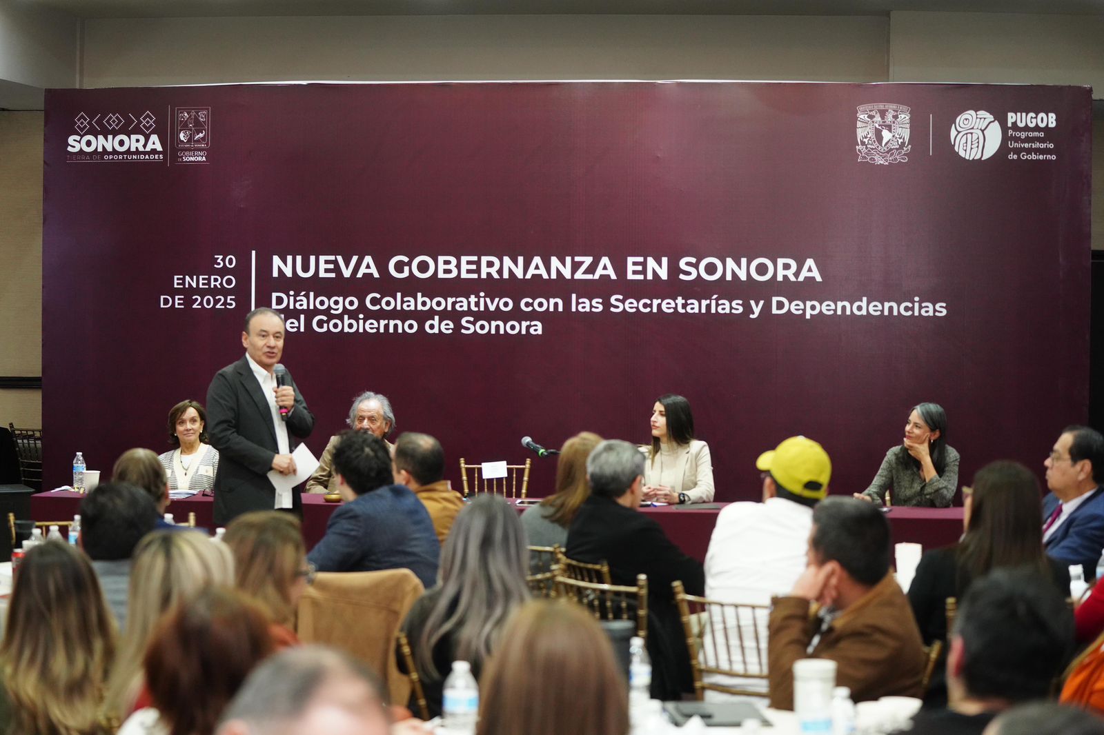 Hermosillo, Sonora; 30 de enero de 2025.- El gobernador Alfonso Durazo Montaño sostuvo un encuentro con las dependencias y entidades que conforman la administración estatal en el evento Nueva Gobernanza en Sonora, con el objetivo de reforzar la coordinación y fortalecer el trabajo conjunto de su gobierno.