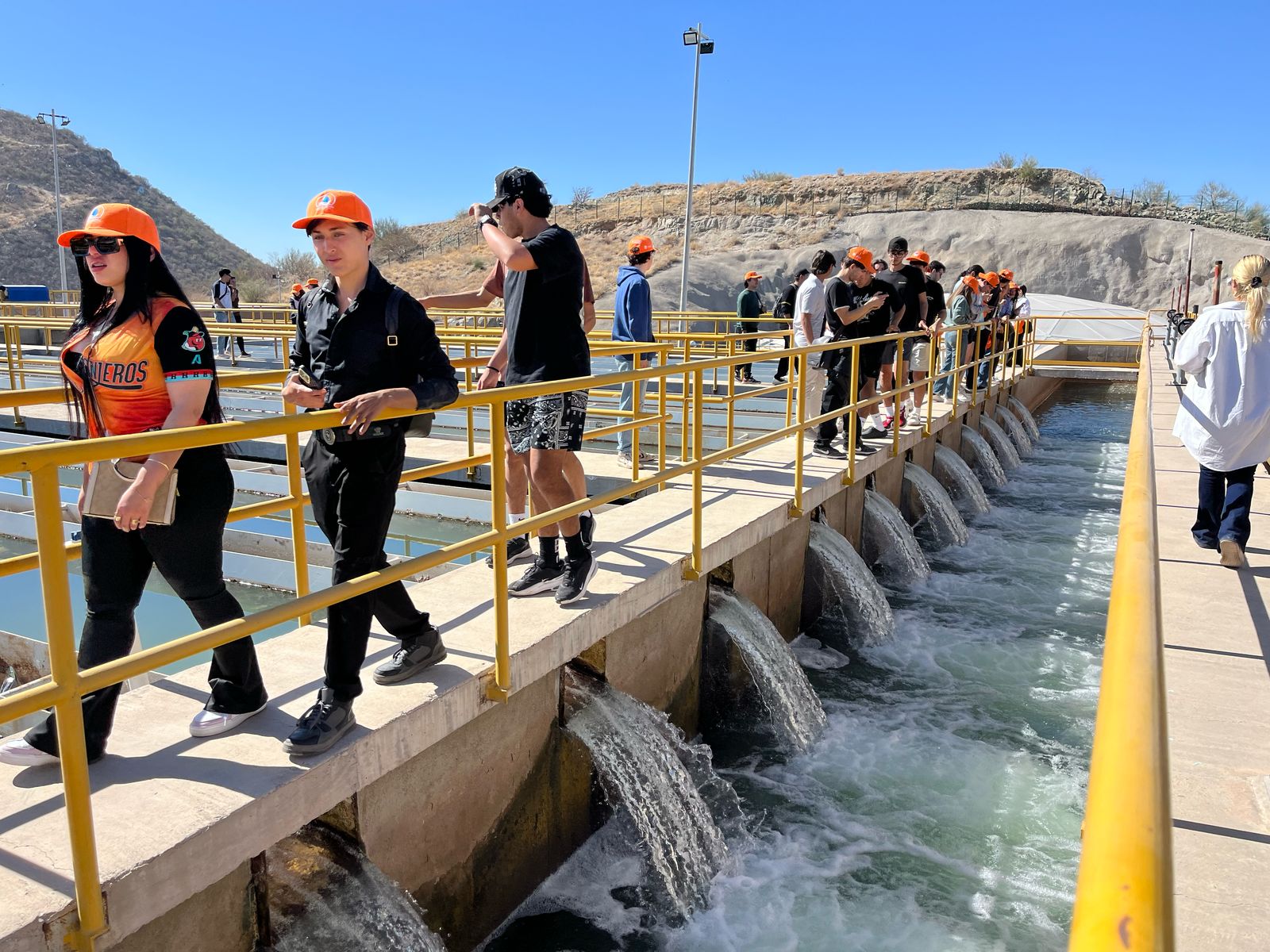 Hermosillo, Sonora; 23 de febrero, 2025.- Participantes del concurso Jóvenes H Salvemos el Aguah, visitaron cada uno de los puntos y etapas del proceso en el que se extrae, almacena, potabiliza, distribuye y mide el agua potable en el municipio.