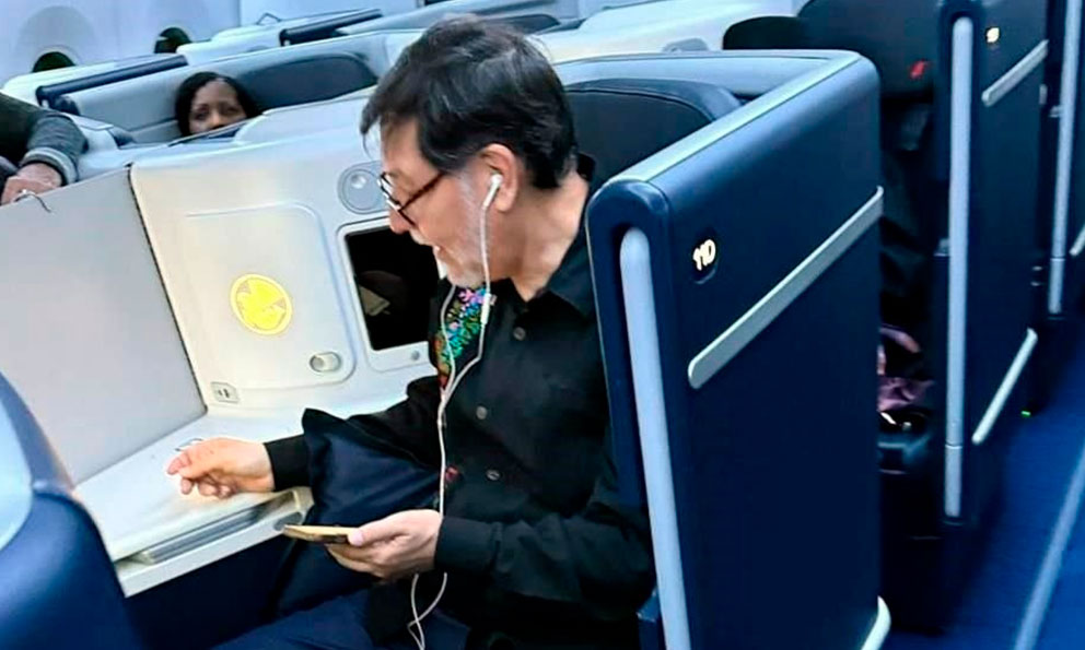 Exhiben a Noroña viajando a Europa en clase ejecutiva
