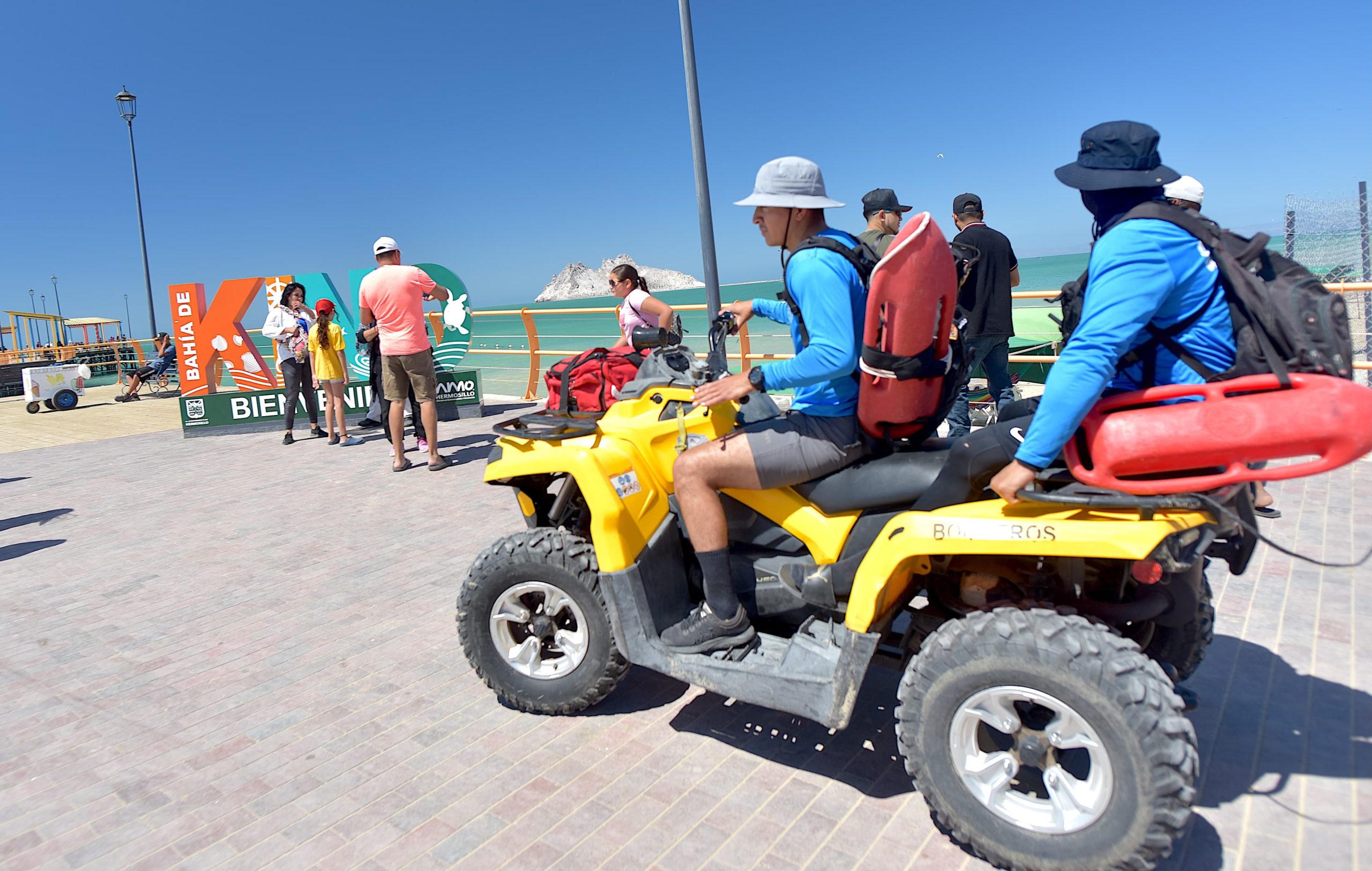 Se desplegaron 8 elementos de rescate acuático adicionales, además de los 4 elementos de base en Bahía de Kino, listos para atender auxilios en el mar, incidentes de salud o cualquier eventualidad.
