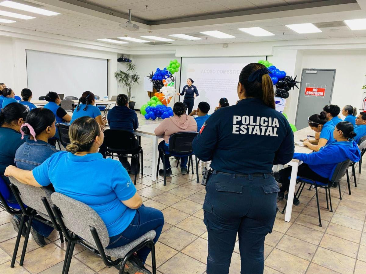 La corporación en acciones de proximidad, comparte con diversas empresas temas referentes a la violencia, acoso y aplicaciones móviles de la SSP como Mujeres Seguras y Antiextorsión Sonora.