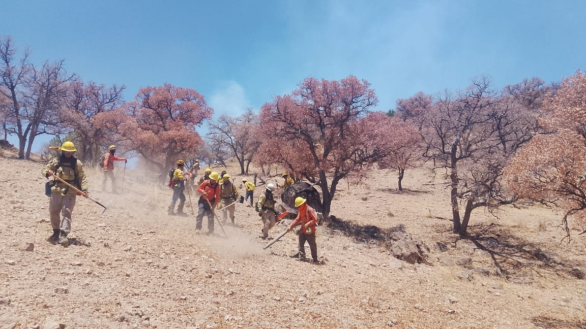 En el lugar trabajan 48 brigadistas de la Comisión Nacional Forestal (Conafor) y de la Brigada Estatal de Manejo de Fuego de Sagarhpa y Protección Civil Sonora.