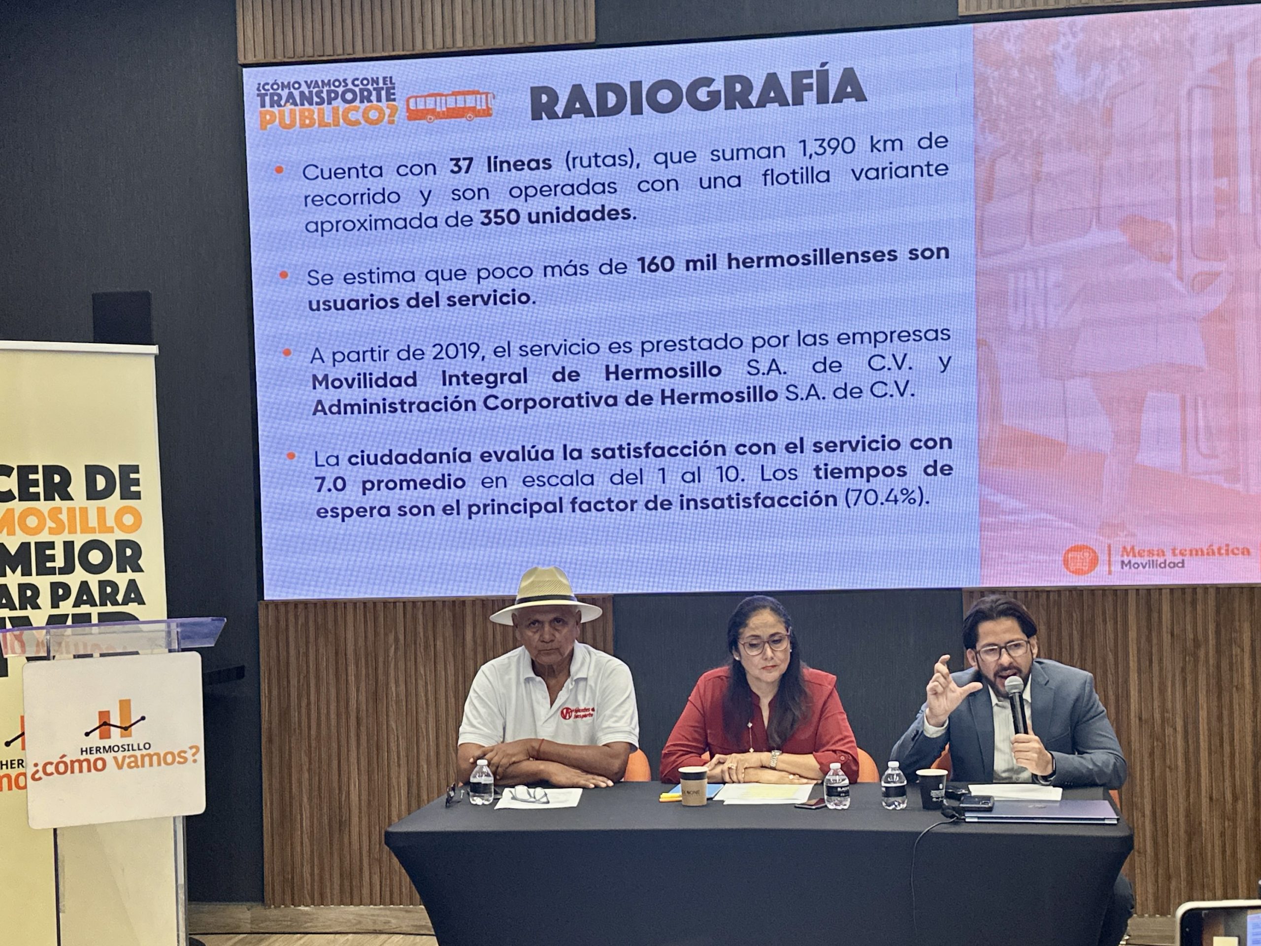 Hermosillo, Sonora, miércoles 9 de julio de 2025. Para enriquecer la conversación pública y promover una ciudadanía informada y participativa, la organización Hermosillo ¿Cómo Vamos? presentó el documento “¿Cómo Vamos con el Transporte Público? Análisis de la sostenibilidad financiera del transporte público urbano de Hermosillo”, el cual ofrece un diagnóstico detallado del sistema de transporte público urbano de Hermosillo.