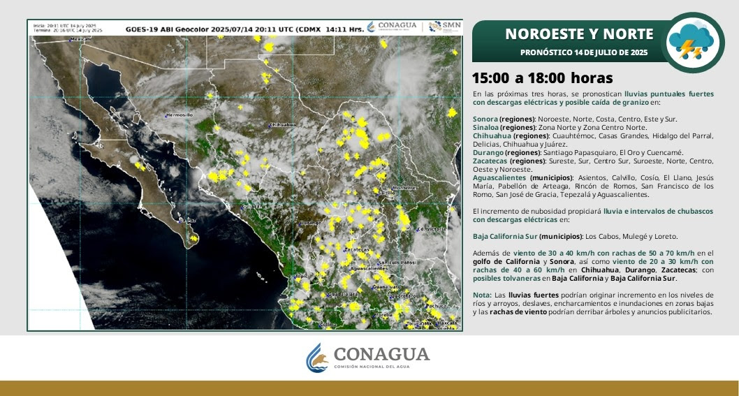 Hermosillo, Sonora; 16 de julio de 2025.- El Gobierno de Sonora, a través de la Coordinación Estatal de Protección Civil (CEPC), hizo un llamado a la población a mantener las medidas de prevención tanto por las tormentas que se seguirán presentando, como por las altas temperaturas, fenómenos propios de la actual temporada de verano.