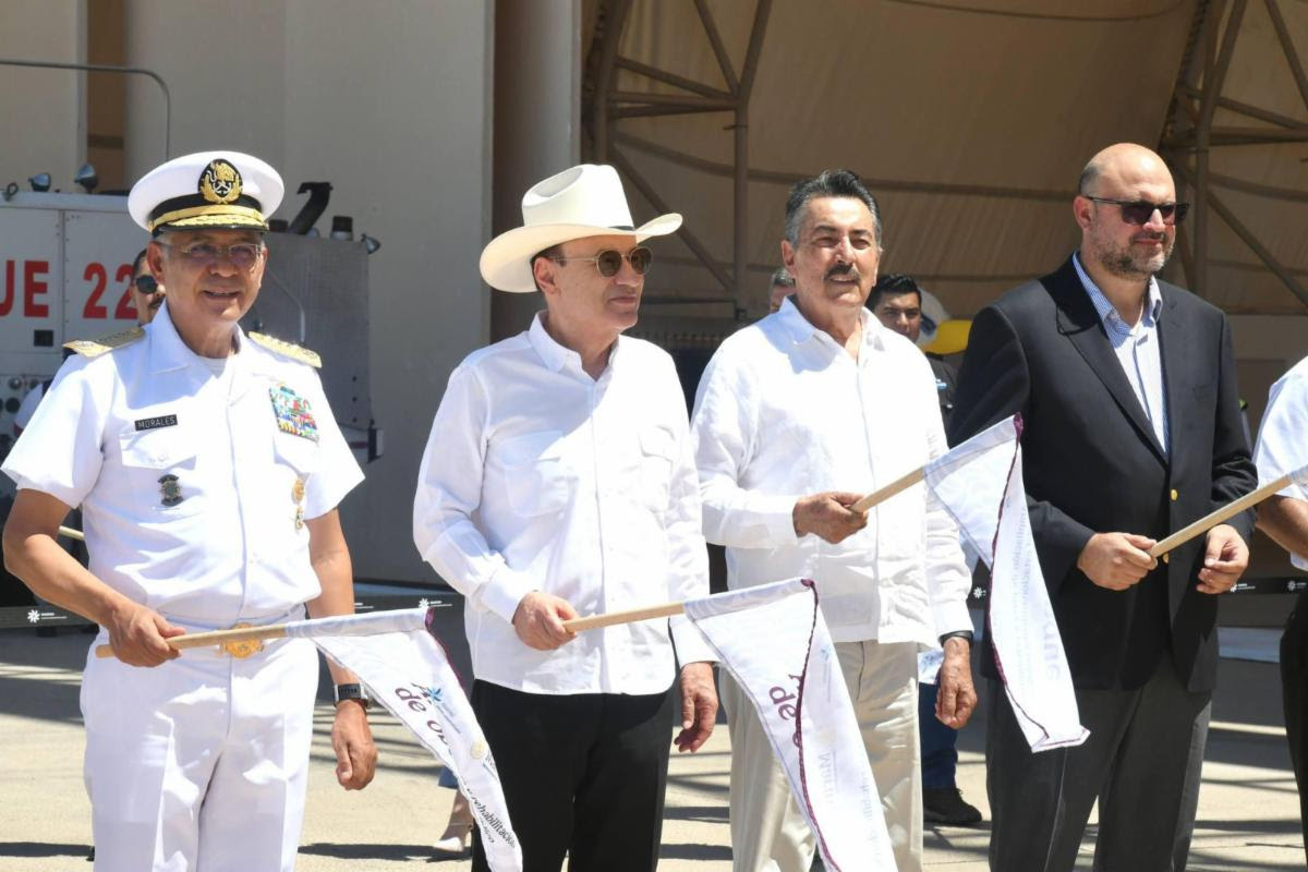 En el evento también estuvieron presentes el Presidente Municipal de Cajeme, Carlos Javier Lamarque Cano; el Presidente de Grupo IAMSA, Roberto Alcántara Rojas; el Comandante de la Segunda Región Naval, Vicealmirante Daniel Escobedo Escobedo, y el Administrador del Aeropuerto de Internacional de Ciudad Obregón, Almirante Humberto Neri Peregrín.