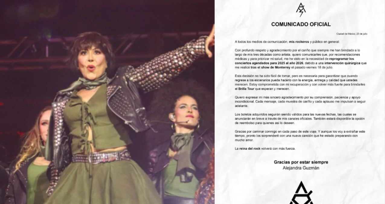 Alejandra Guzmán anunció que el resto de su gira “Brilla Tour” será pospuesta “por recomendaciones medicas”, debido a que, luego del último concierto que ofreció en Monterrey, tuvo que ser operada.