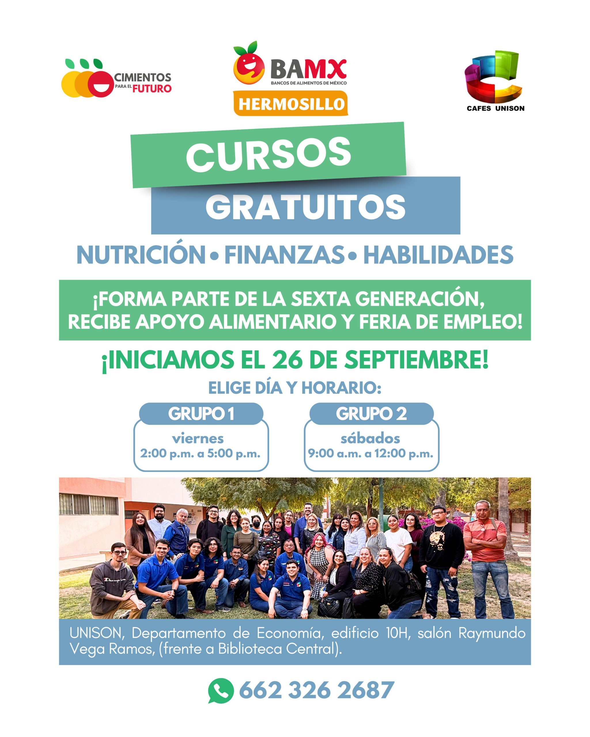 Hermosillo, 3 de septiembre de 2025.- El Banco de Alimentos de Hermosillo convoca a la comunidad a integrarse a la sexta generación del programa Cimientos para el Futuro, que ofrece capacitación gratuita, apoyo alimentario familiar y una Feria de Empleo con empresas aliadas para facilitar la inserción laboral de los participantes.