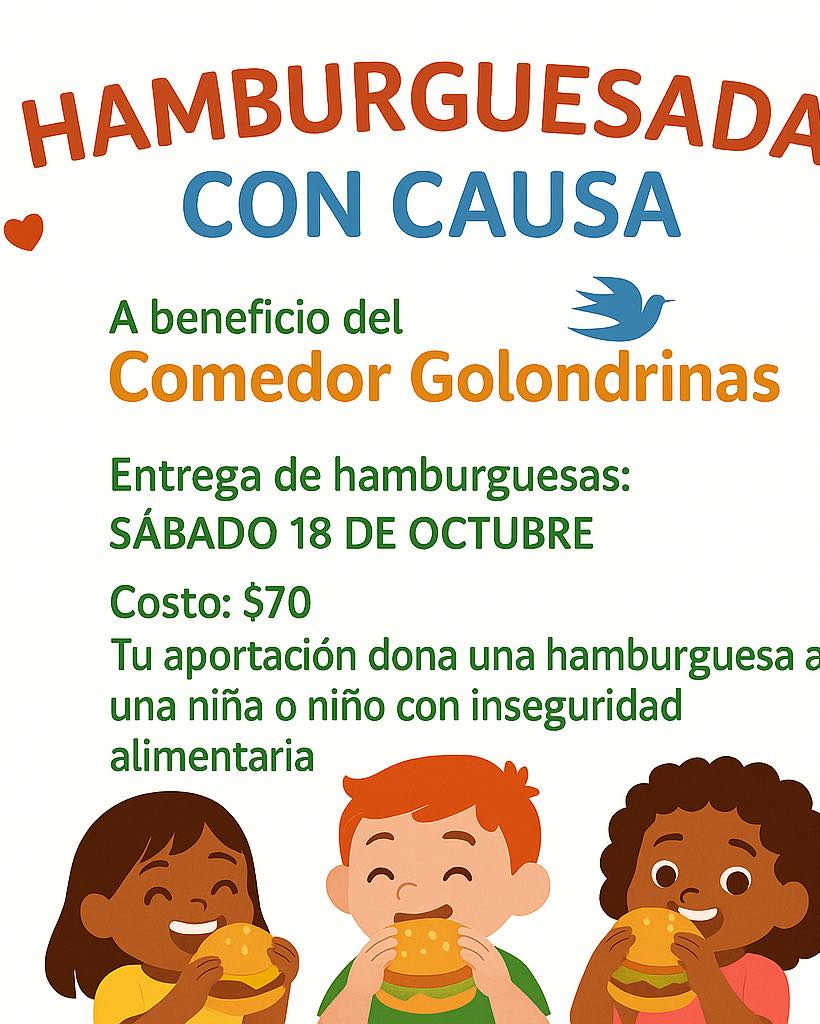 La directora del comedor, Irasema León Millán, explicó que esta actividad busca unir a la comunidad bajo un mismo objetivo: compartir amor y apoyo a través de un gesto sencillo. Por una aportación de 70 pesos, cada persona estará donando una hamburguesa a una niña o niño que enfrenta inseguridad alimentaria.