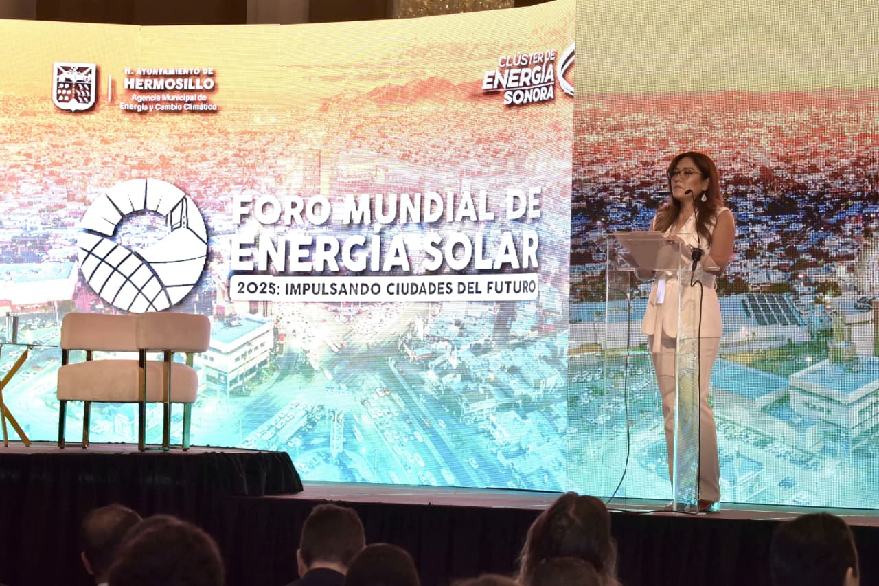 Con la representación del presidente municipal Antonio Astiazarán Gutiérrez y acompañada de José Eduardo Robledo, presidente del Clúster de Energía Sonora, inauguró los trabajos del evento en el que las y los asistentes comparten la visión de que el sol no sólo ilumina las calles, sino también las oportunidades de transformación.