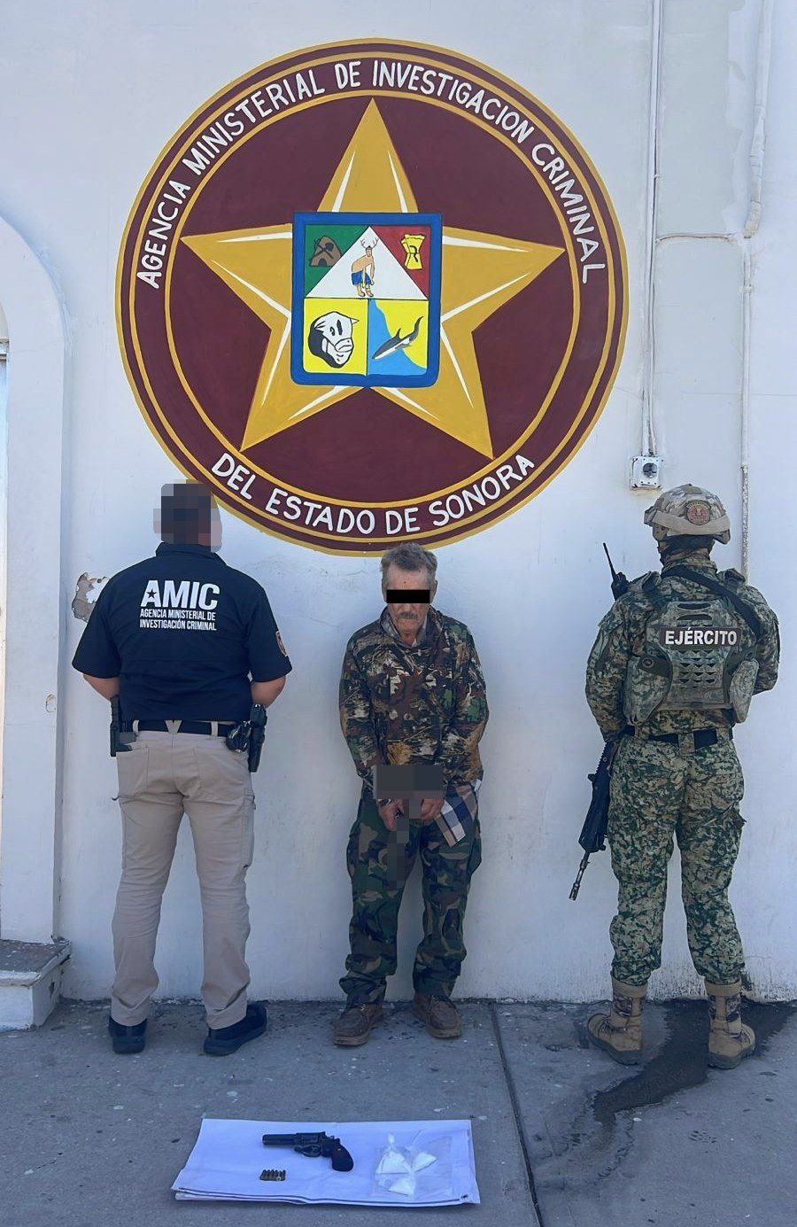General Plutarco Elías Calles, Sonora, 23 de octubre de 2025.- Durante un operativo conjunto entre la Agencia Ministerial de Investigación Criminal (AMIC) y la Secretaría de la Defensa Nacional (DEFENSA), se logró la detención de un hombre en posesión de un arma de fuego y varios envoltorios con droga en la colonia Centro, en Sonoyta.