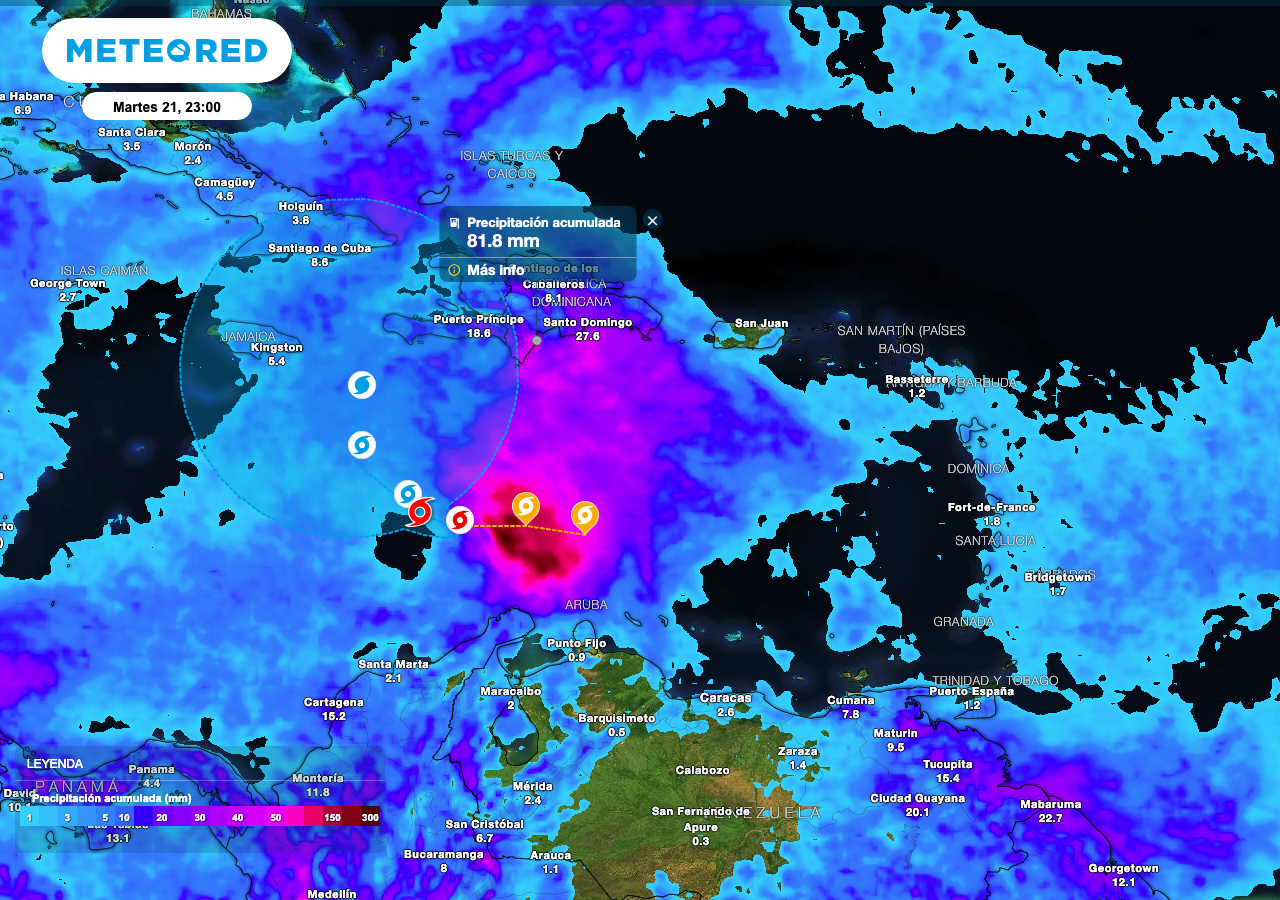 También avisó que “a través de Puerto Rico, el norte de la República Dominicana, el norte de Haití y el oeste de Jamaica, se esperan de 5 a 10 centímetros (2 a 4 pulgadas) de lluvia hasta el domingo”, con posibles inundaciones repentinas y urbanas. En particular, resaltó que las condiciones de huracán son posibles en Haití y Jamaica desde el viernes por la tarde.