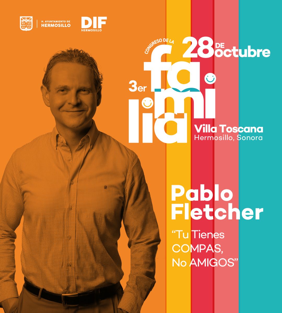 Hermosillo, Sonora; 27 octubre de 2025.- Como parte del Congreso de la Familia 2025, que se llevará a cabo el próximo 28 de octubre en Hermosillo, se presentará el conferencista Pablo Fletcher, quien compartirá con los asistentes la charla “Tú tienes compas, no amigos”, una reflexión profunda sobre el verdadero valor de la amistad y las relaciones humanas en tiempos de superficialidad y conexión digital.