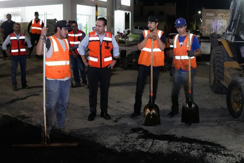 Supervisa Toño Astiazarán trabajos de bacheo nocturno en bulevar Quiroga