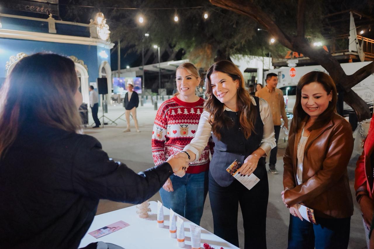 Patty Ruibal recorrió los puestos del Bazar emprendedor acompañada por Madeleine Bonnafoux, directora general de DIF Hermosillo y Fernanda Cisneros Rodríguez, directora de Desarrollo Turístico de la Agencia Municipal de Desarrollo Económico, así como por Alejandra Millán López y Diana Verónica Quiroga Copado, presidenta nacional y presidenta en Hermosillo de la organización Hiaki, respectivamente.