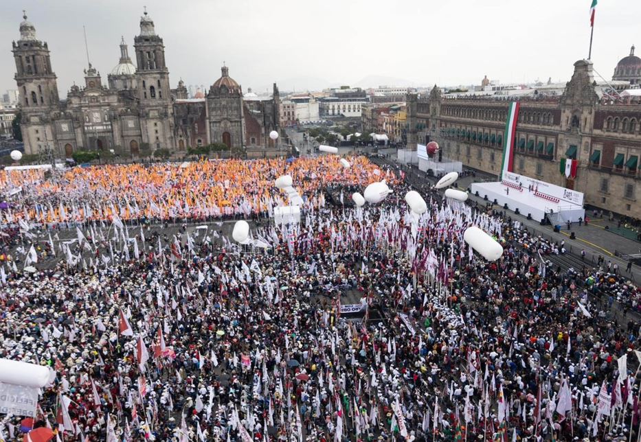 ‘Que nadie se equivoque, que se oiga bien fuerte y lejos: las y los jóvenes están en su gran mayoría con la transformación de la vida pública de México’, afirmó desde el templete instalado en el Zócalo capitalino.